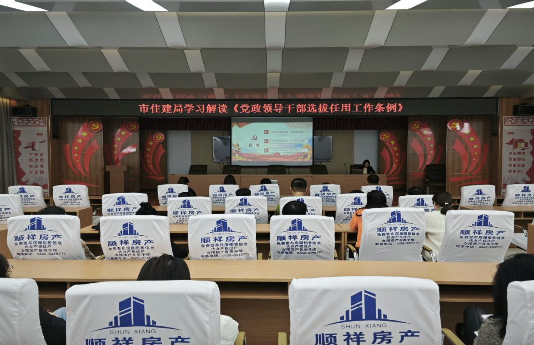 为进一步规范领导干部选拔任用工作,营造风清气正的选人用人环境,市住建局于11月21日组织培训解读《领导干部选拔任用工作条例》。参加培训的有机关各科室全体干部、局属住房保障服务中心、征收办、物业服务中心、监测中心副科级以上干部参加。 此次培训旨在深入贯彻新修订的《党政领导干部选拔任用工作条例》,提升...